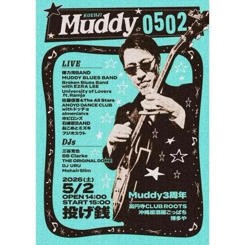 Muddy 3rd Anniversary Live at Muddy, Koenji Saturday, May 2, 2026 3:00 PM 6:00 PM 15:00 18:00 Google Calendar ICS Muddy Facebook