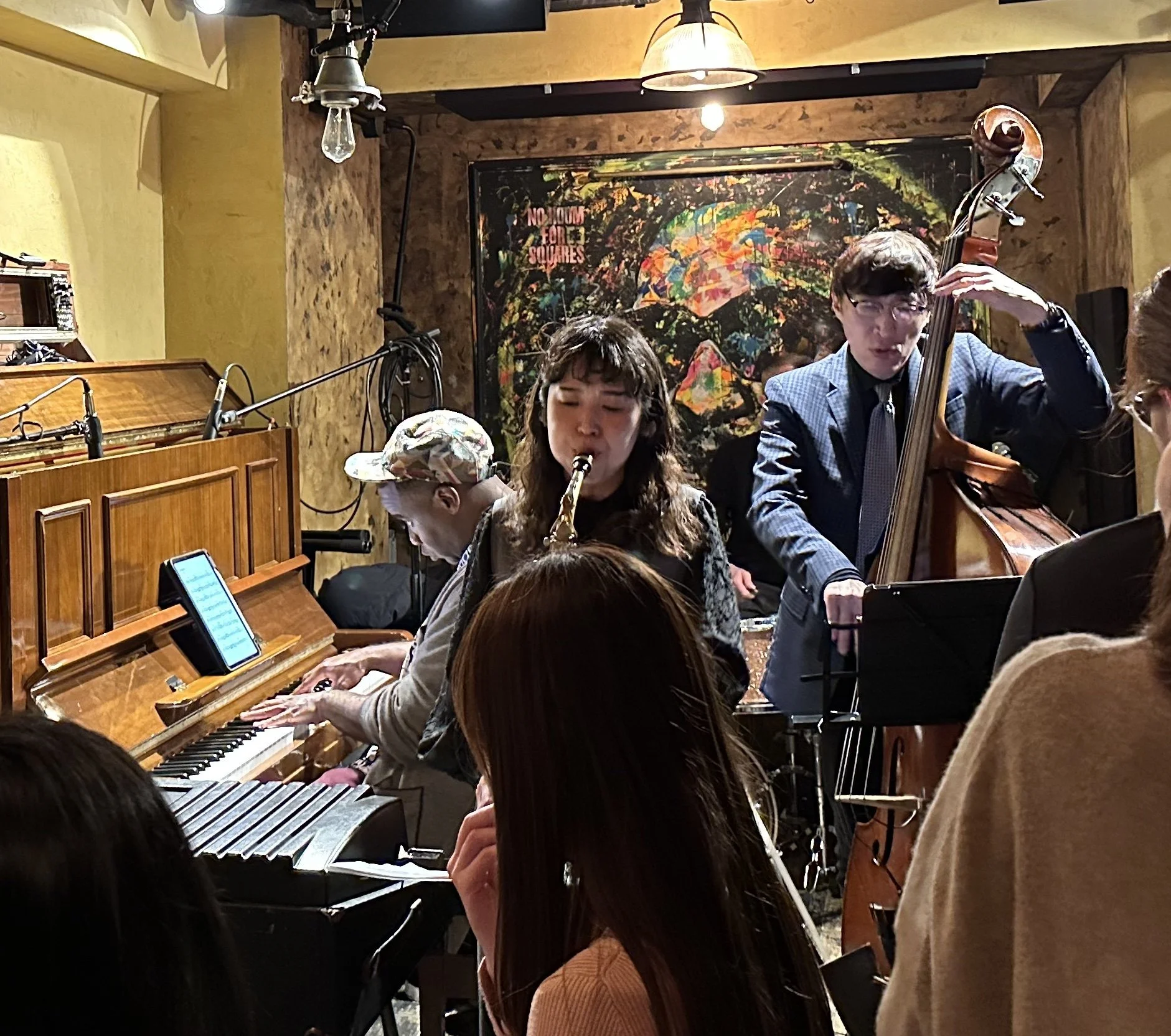 Frehse’s “That’s Weird” had an off-kilter Monk-like rhythm and melody line that set out tension that was more than fully resolved by the end of the tune, with great solos from Ezawa (again) and Bryant, who’s a pianist with plenty of Monk in his playing. With everyone’s solo, I kept thinking the following notes would land “here,” but they kept landing “there.” That sense of surprise was refreshing and kept the crowd leaning into the music.