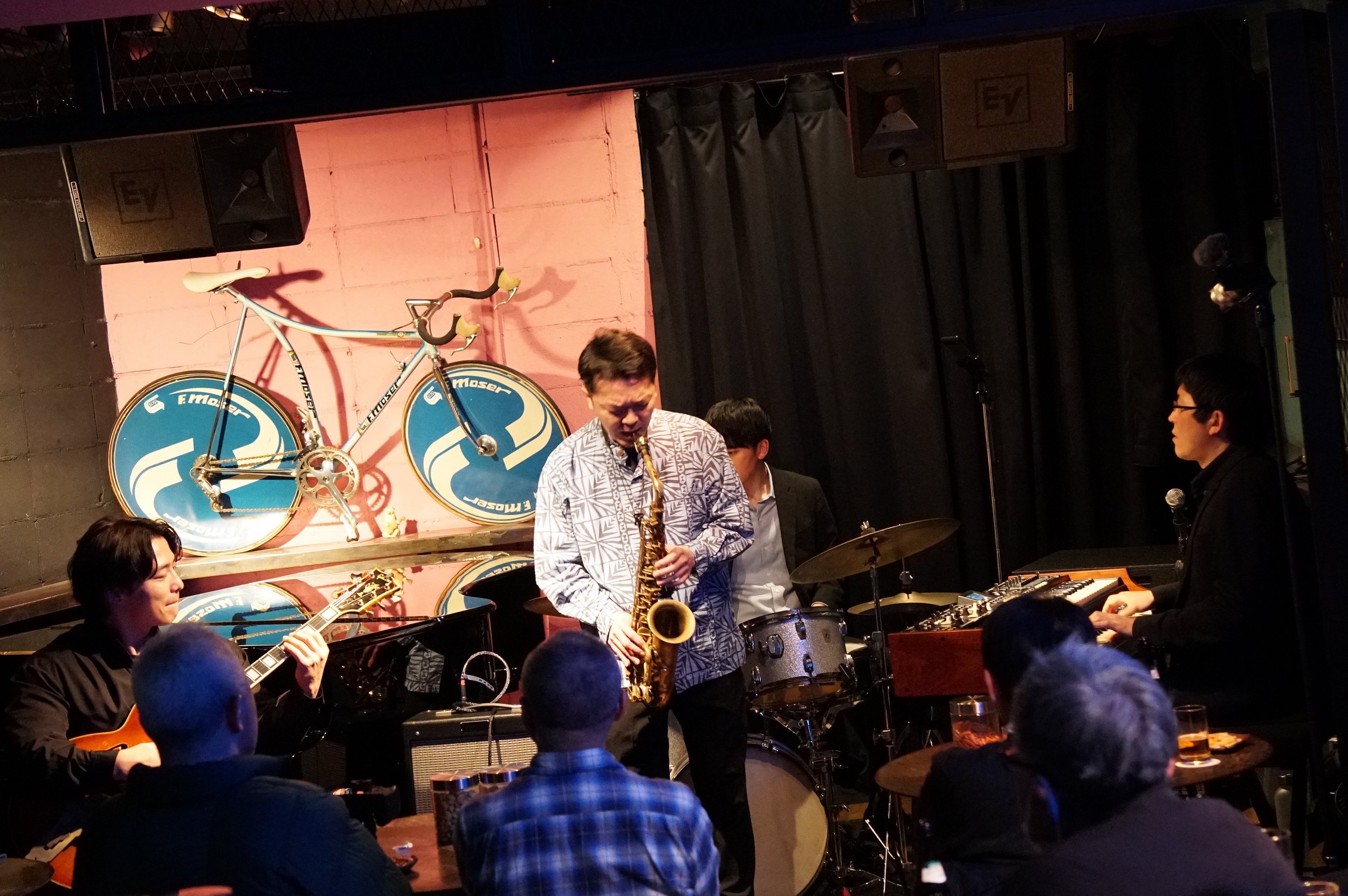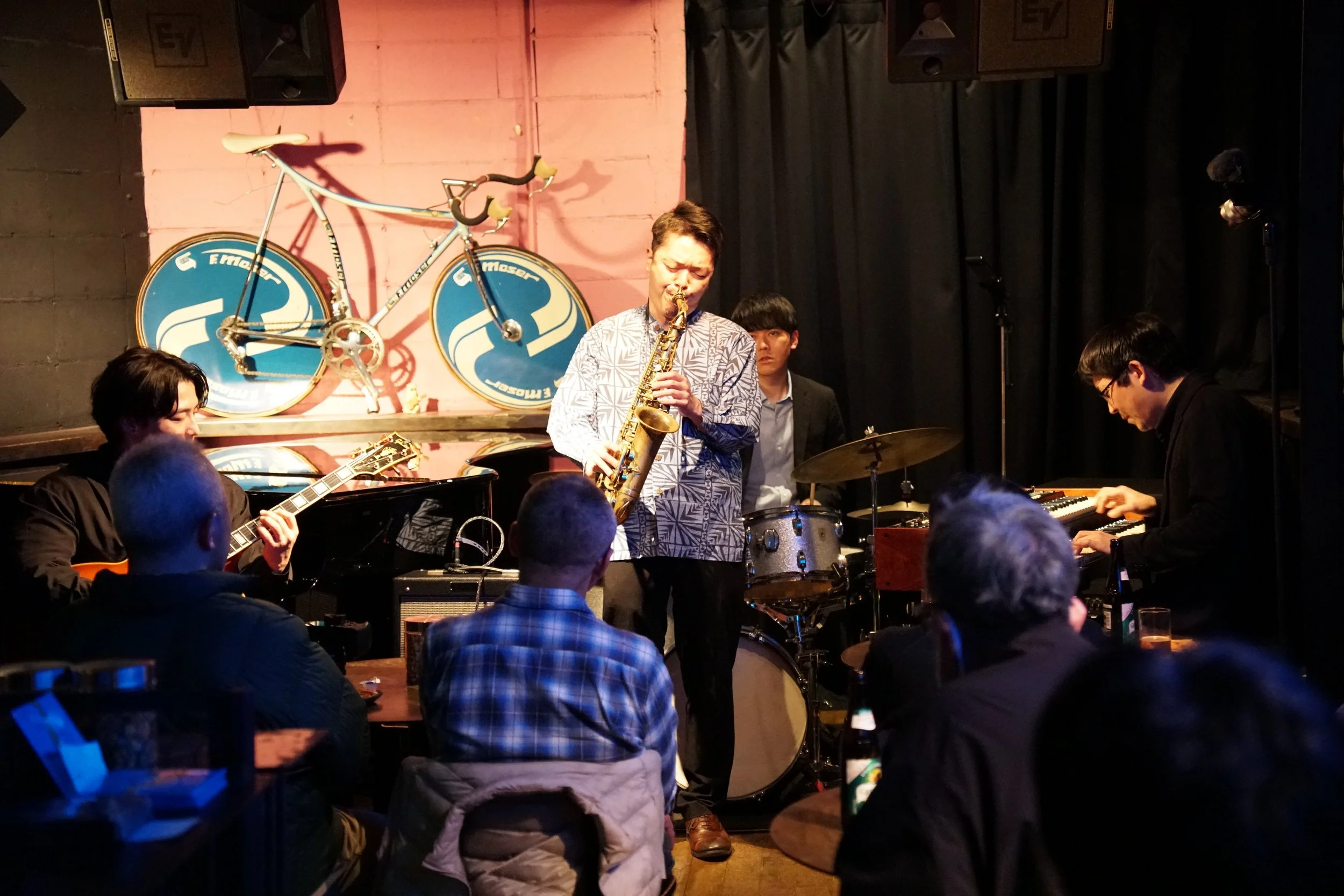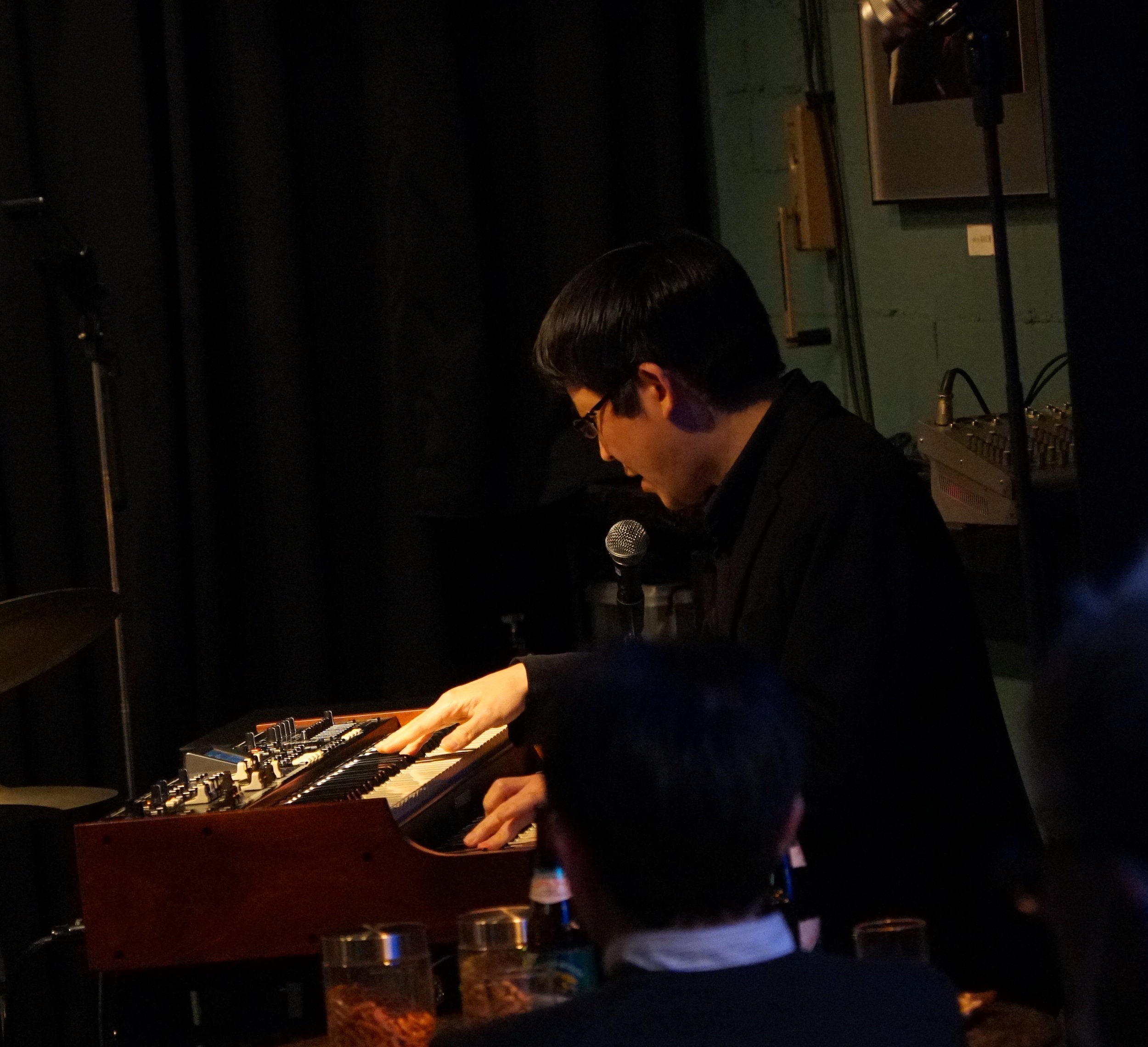 The first set closed out with a blues that let Tsuchida rev up the full power of the organ sound. With a modified Hammond and computer-synced speakers that replicated the class B3 and Leslie speaker combo, it filled the large space of the club.